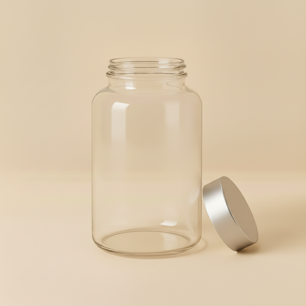 • Format : flacon PET rond 200 ml avec couvercle aluminium lisse argenté.