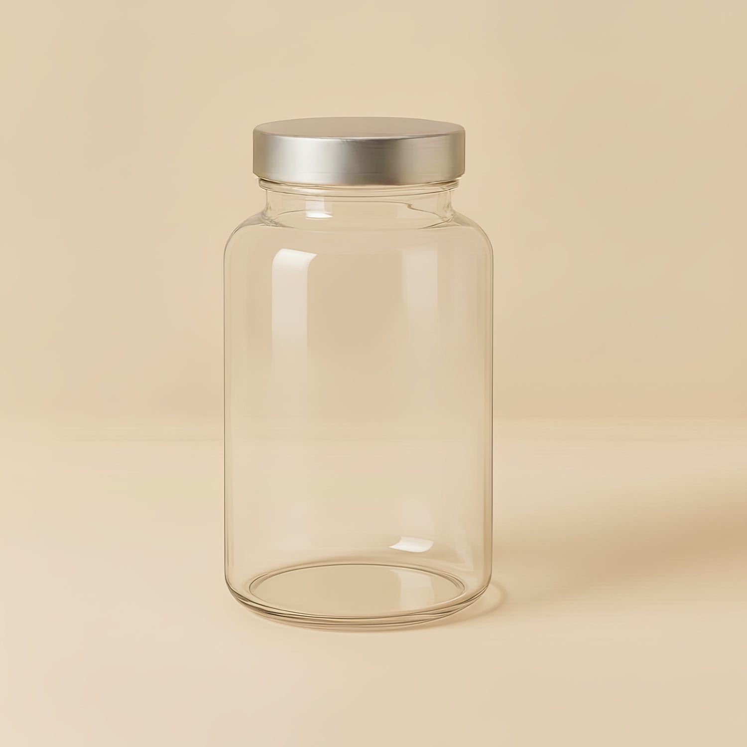 • Format : flacon PET rond 250 ml avec couvercle aluminium lisse argenté.